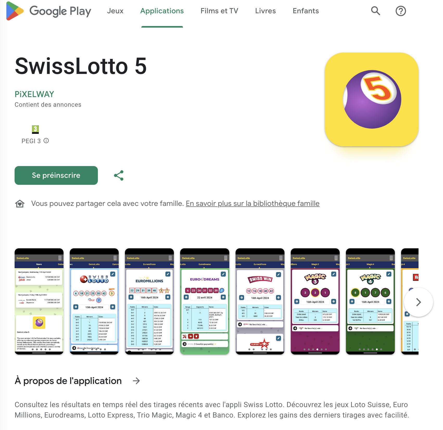 SwissLotto is a user-friendly application crafted to deliver game results (SwissLotto, Euromillions, Magic 3, Magic 4, and Banco) directly to your Android mobile device.